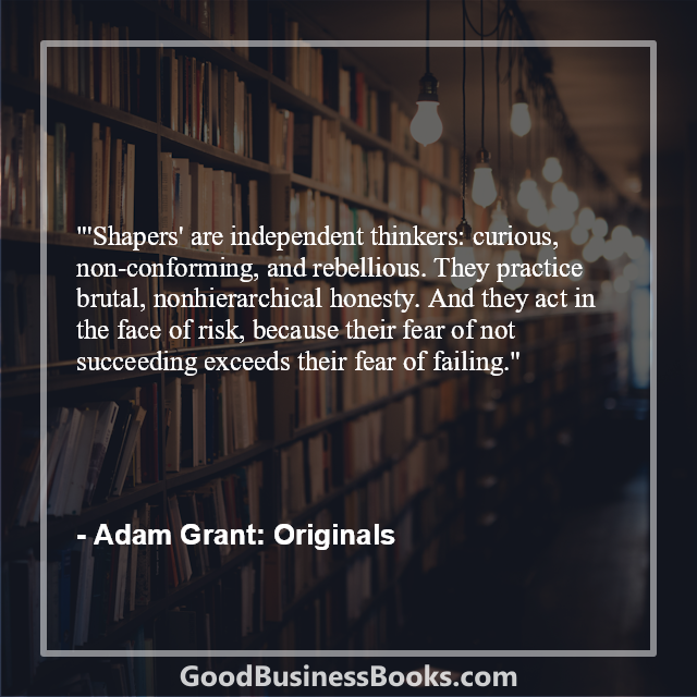 'Shapers' are independent thinkers: curious, non-conforming, and rebellious. They practice brutal, nonhierarchical honesty. And they act in the face of risk, because their fear of not succeeding exceeds their fear of failing.